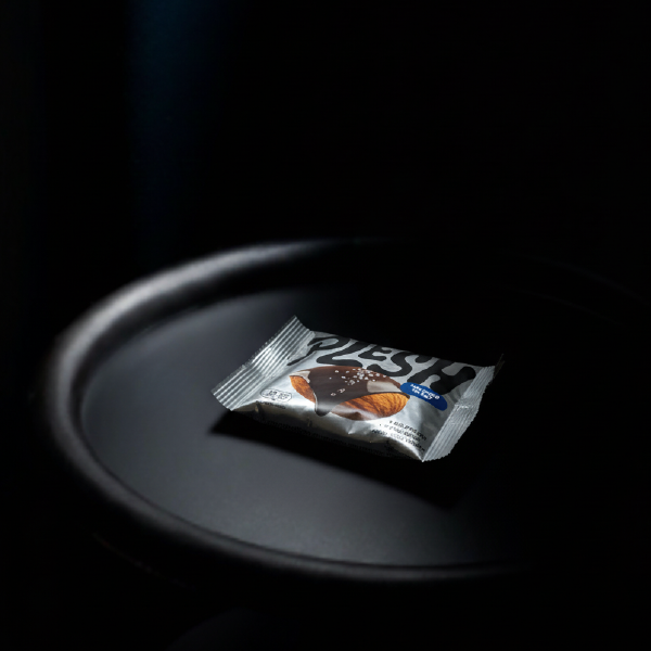 Almendras tostadas, cubiertas de chocolate negro y con un punto de sal marina que hace que no puedas parar.