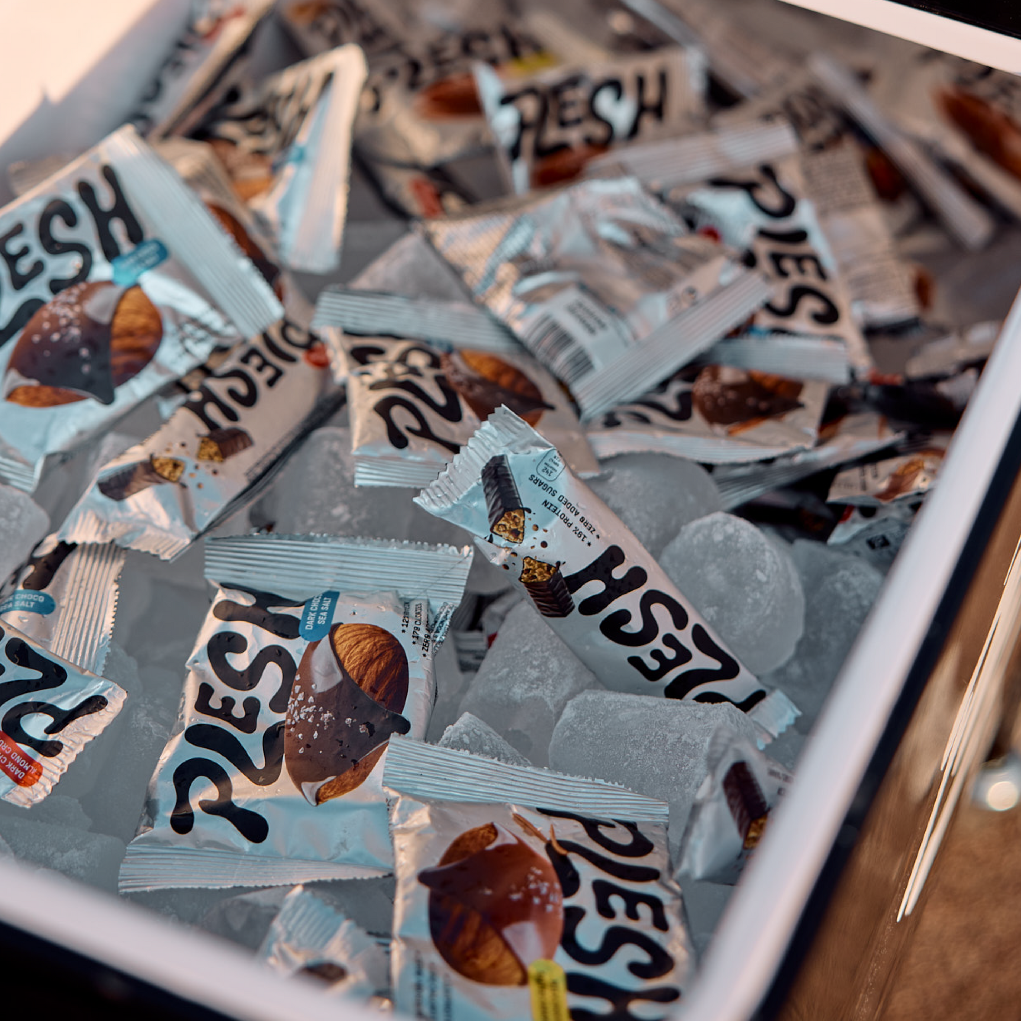 Nuestros bites y barritas de choco negro son 100% veganos mientras que las barritas y los bites de choco-leche son vegetarianos.